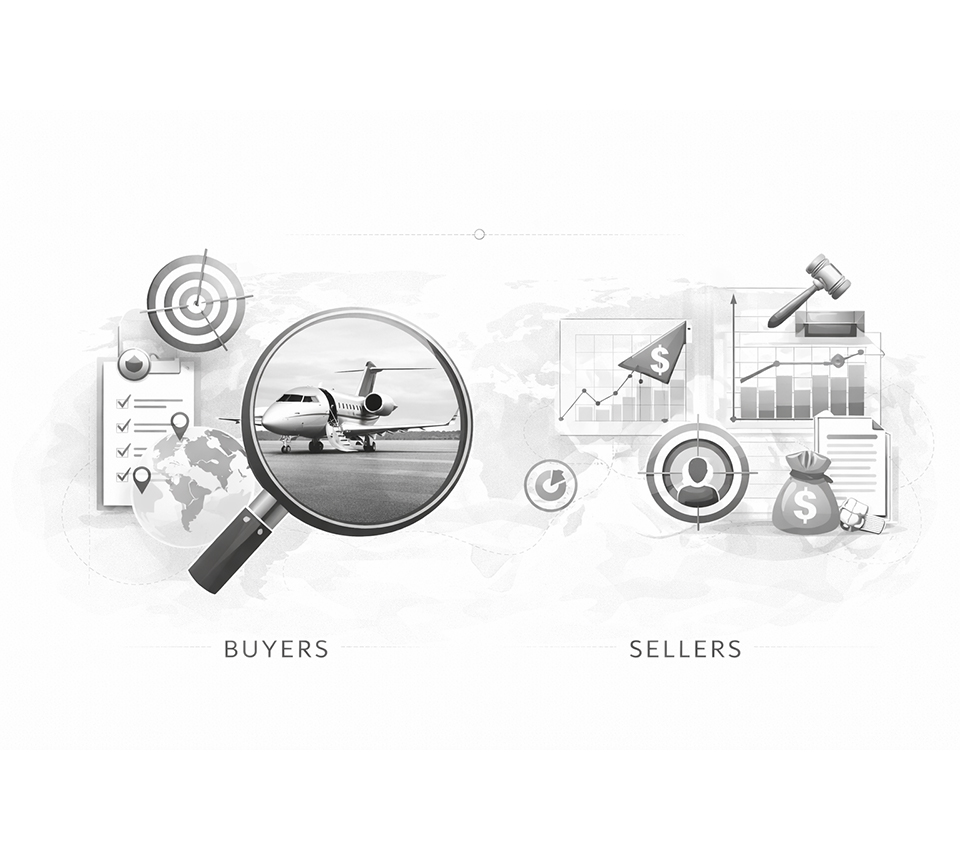 TSH aviation historically emphasized buyer representation. Today, we act in both capacities — while maintaining a selective mandate policy. Buyer representation remains a core strength while seller mandates are accepted on an exclusive basis.